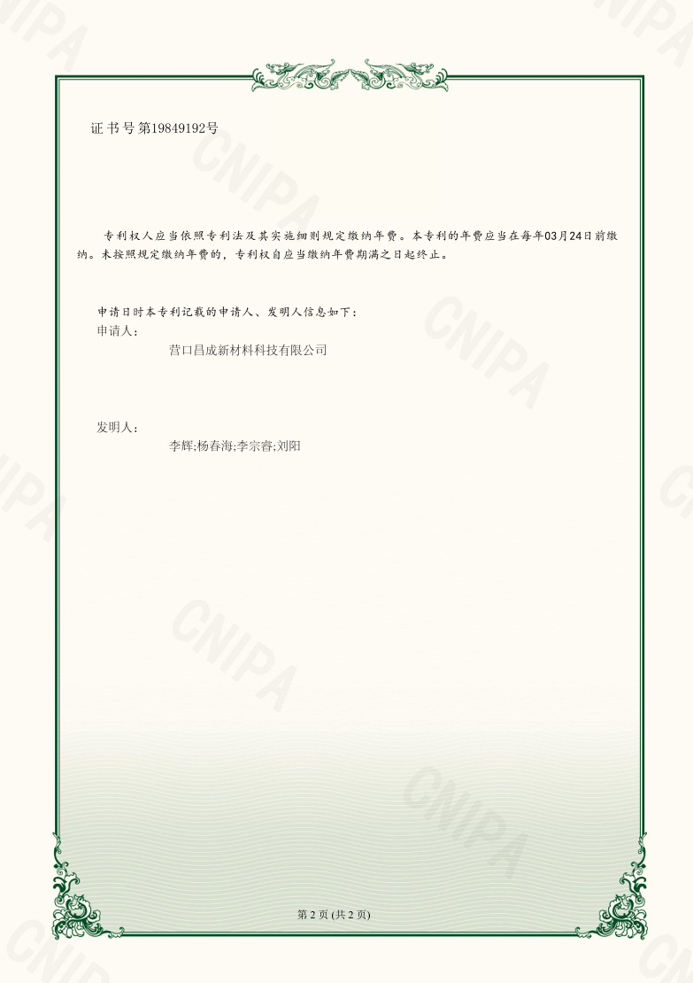 營口昌成新材料科技有限公司 版權(quán)所有(C)2021?網(wǎng)絡(luò)支持?中國化工網(wǎng)?全球化工網(wǎng)?生意寶?網(wǎng)盛建站?著作權(quán)聲明  遼ICP備2021005949號(hào)